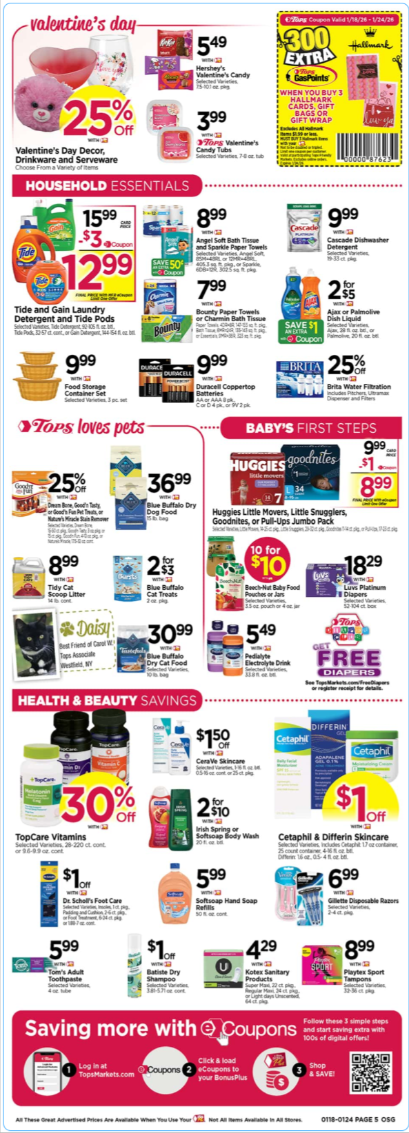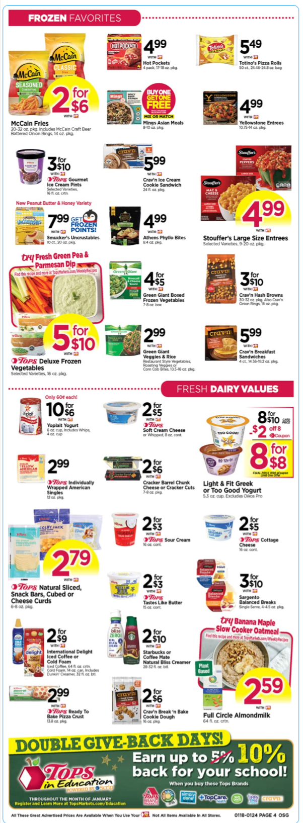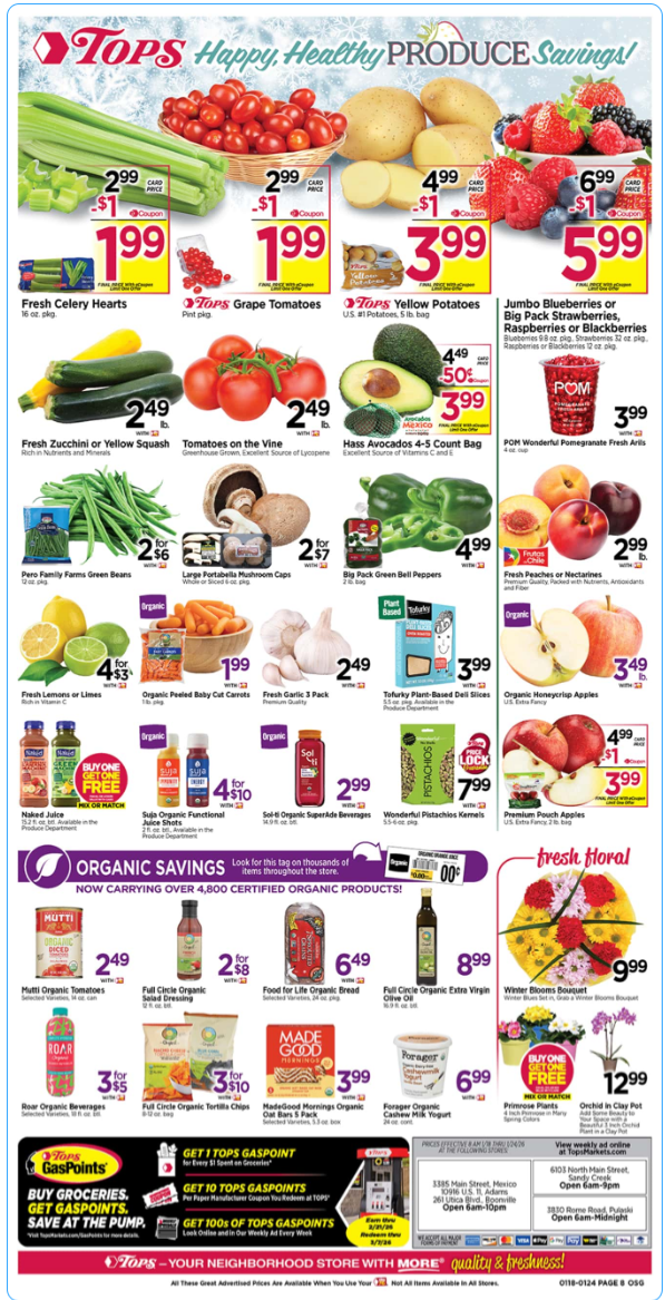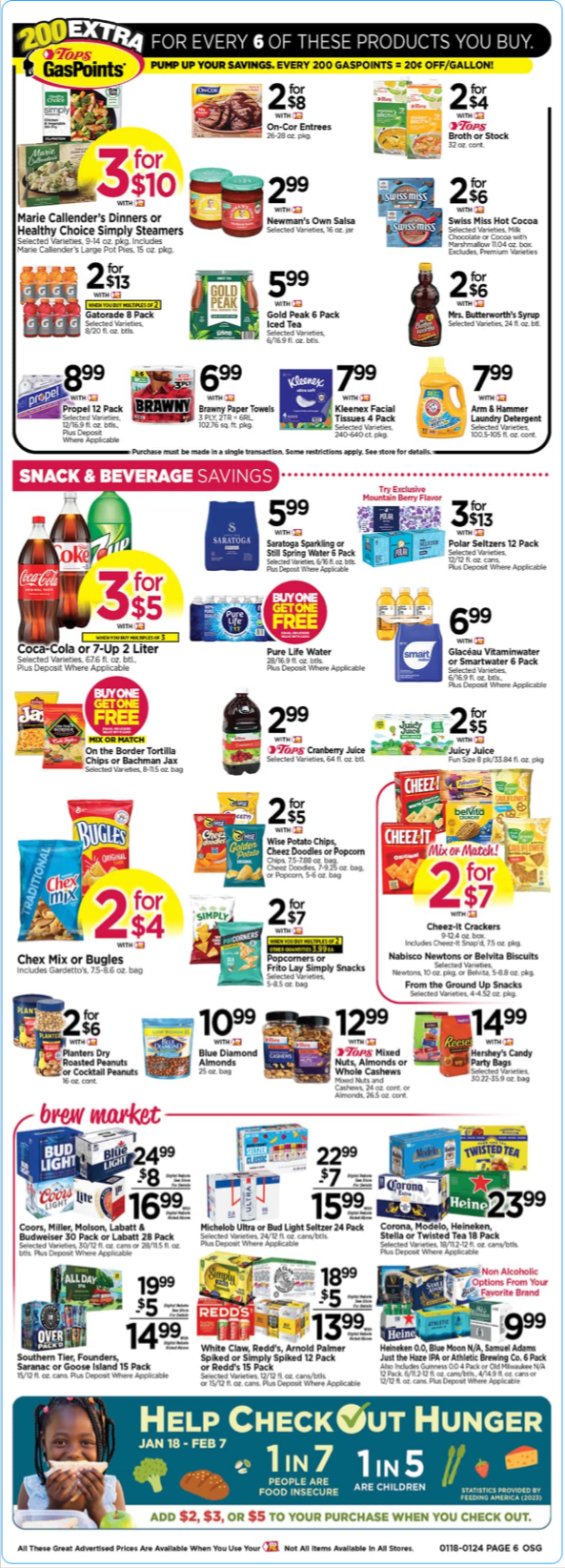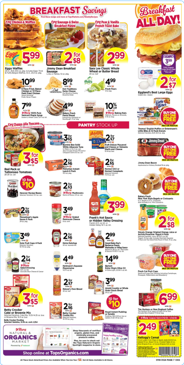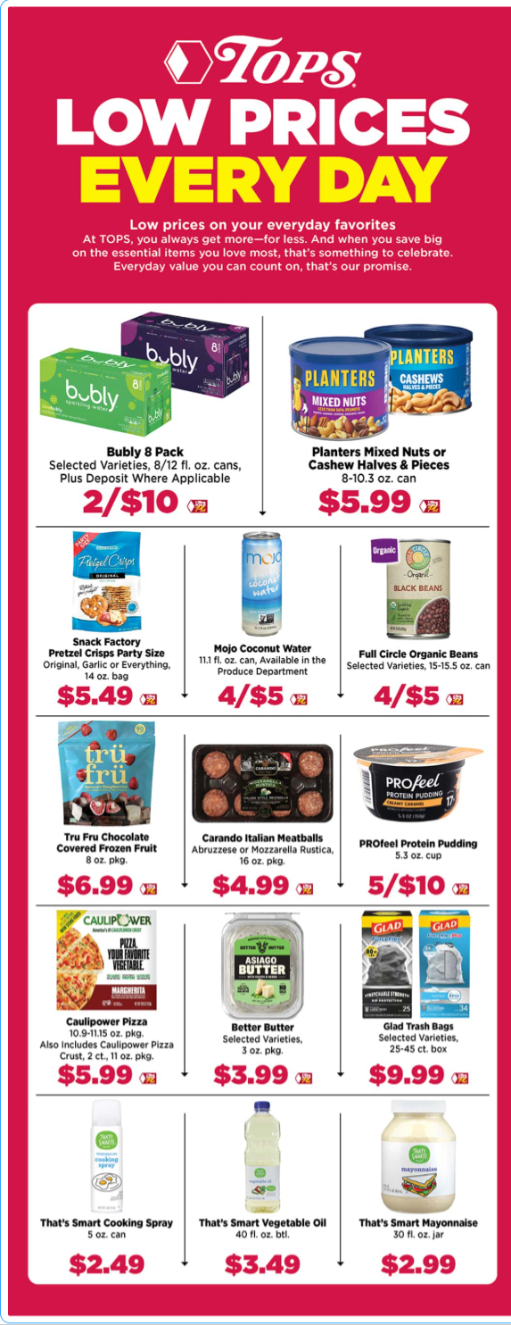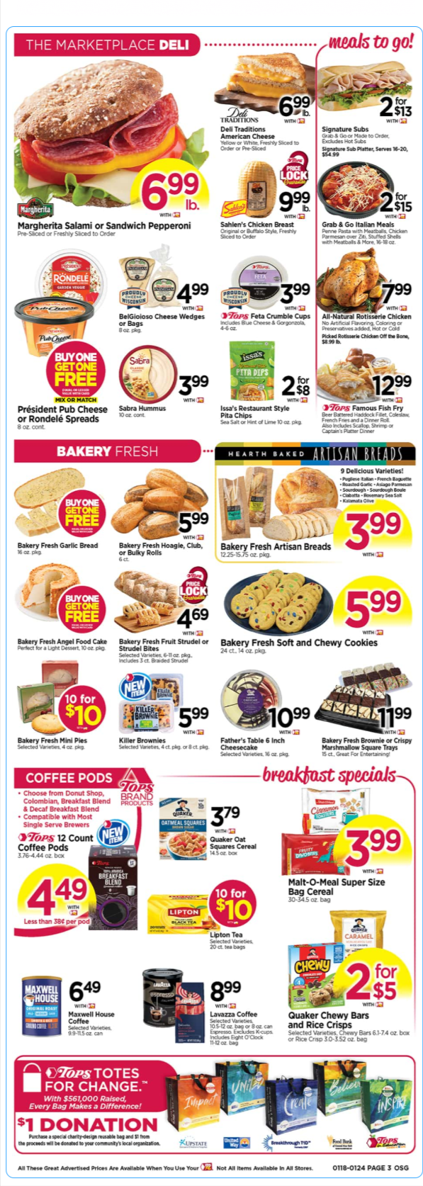 This week’s ad features great deals on everyday essentials, including fresh fruits, vegetables, milk, cheese, and bread. From breakfast staples to wholesome snacks, Tops Markets has everything you need.